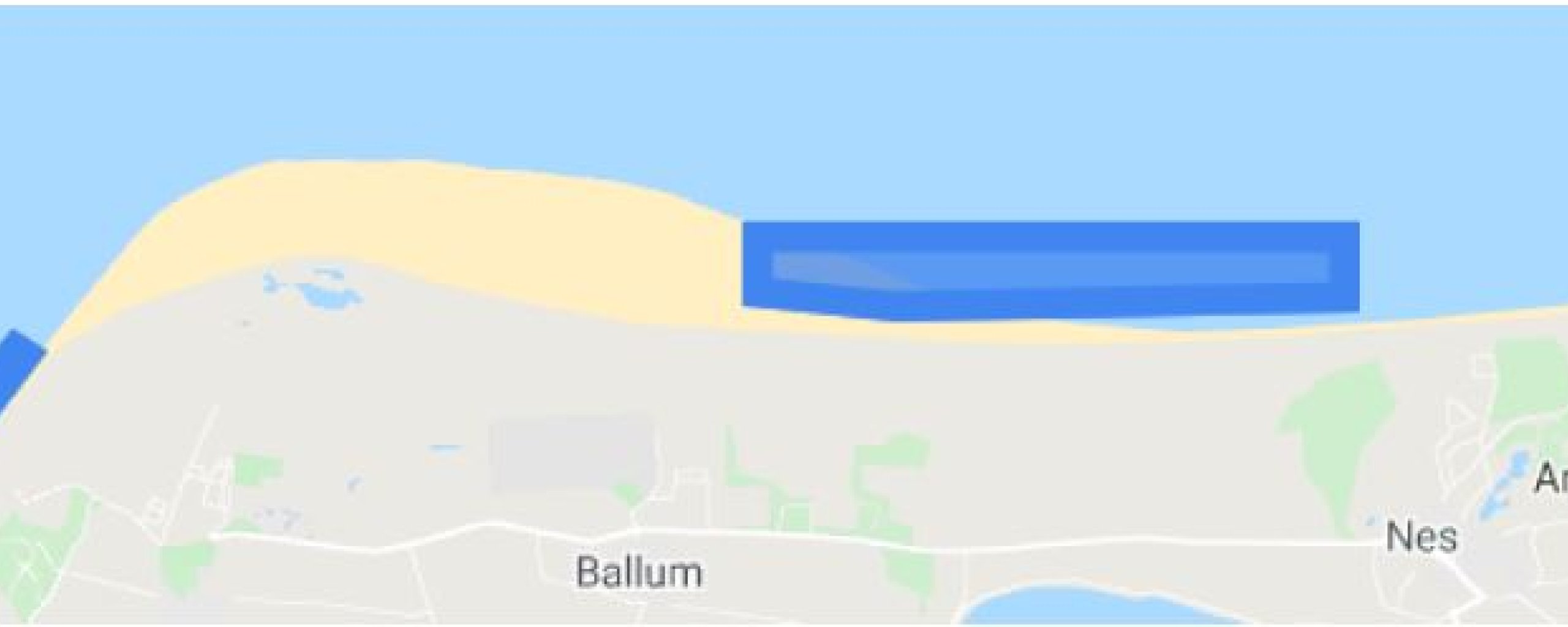 • Soaren mag alleen op het Noordzeestrand tussen de strandpalen 8.200 en 11.300 (tussen Ballum en Nes) en tussen de strandpalen 3 en 4 (nabij Hollum).Op onderstaande kaart staan de locaties in het donkerblauw aangegeven;